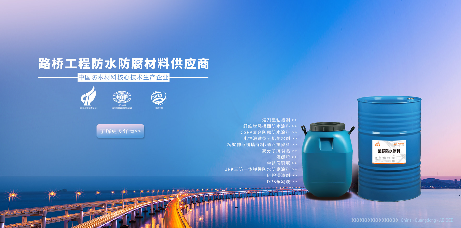 修繕補漏防水系列 廣東愛迪斯新型材料科技有限公司廣州分公司 隔音隔熱系列 路橋及防腐防水系列 家裝工程防水系列 修繕補漏防水系列專業(yè)承接路橋防水防腐工程施工及防水材料銷售,路橋防水工程遍布全國各地,多年的技術(shù)經(jīng)驗積累了一整套橋面防水病害處理方案,專業(yè)的路橋防水技術(shù),配套路橋防水施工設(shè)備,圓滿完成路橋防水施工任務(wù),用戶滿意度評價高,處橋梁防水行業(yè)技術(shù)領(lǐng)先水...